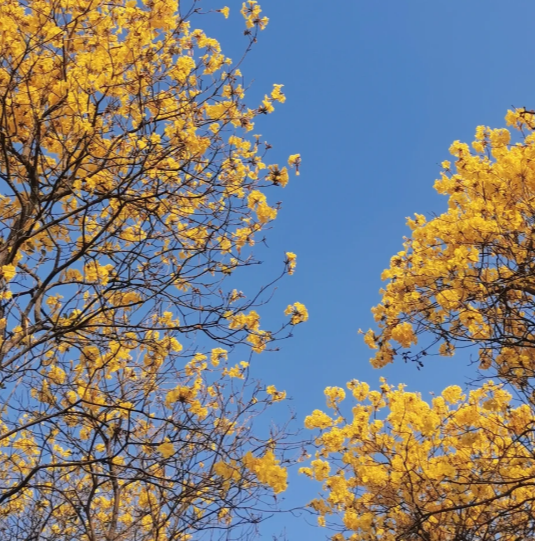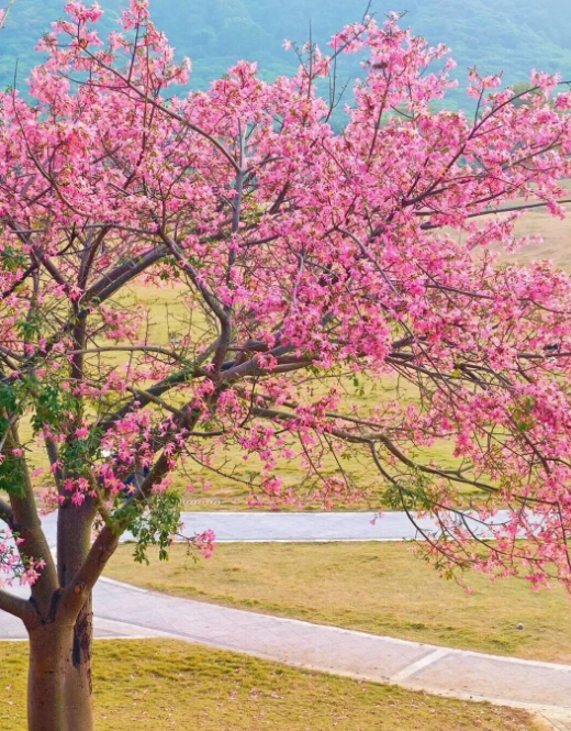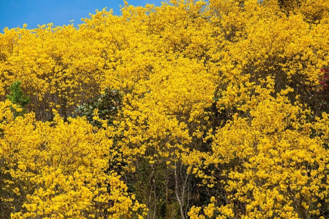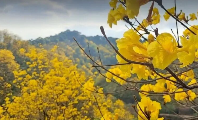 作为从化春日限定花景,黄花风铃正值盛花期,其花开不见叶的特性尽显独特韵味,一簇簇明黄色的花朵缀满枝头,形似串串风铃,微风拂过,花瓣轻盈飘落,宛如一场浪漫的“黄金雨”,既彰显春日明媚,也契合女神们温柔又鲜活的气质。温泉风景区内,黄花风铃与木棉花、紫荆花相伴绽放,红黄绿交织成景,将景区装点得五彩斑斓,泡完温泉漫步花海,惬意十足;风云岭森林公园的山间步道旁,黄花风铃错落分布,与青山绿树、嫣红木棉花相映成趣,登山赏景时可同步邂逅满树金黄与点点嫣红,在运动中感受自然之美;从化大道北两侧的黄花风铃形成“黄金大道”,驱车穿行其中宛如闯入童话世界,随手一拍都是氛围感大片;吕田镇三村村的黄花风铃成片绽放,依托当地原生态乡村田园风光,无需门票即可近距离打卡,是感受自然之美、定格风采的优质点位。