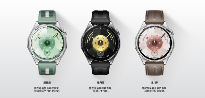 这次标准版的华为WATCH GT 6同样带来了46mm和41mm表盘尺寸的版本,按照官方的说法,46mm版本是以骑行场景为灵感的,配色方面有原野绿、冰川灰和雅丹黑三种;而41mm因为更小巧更轻盈,且是直面普通消费者的,所以配色上更青春更时尚一些,有流光紫、马鞍棕、魅影黑和浮光白4个配色,能够适合更多元的穿搭场景。