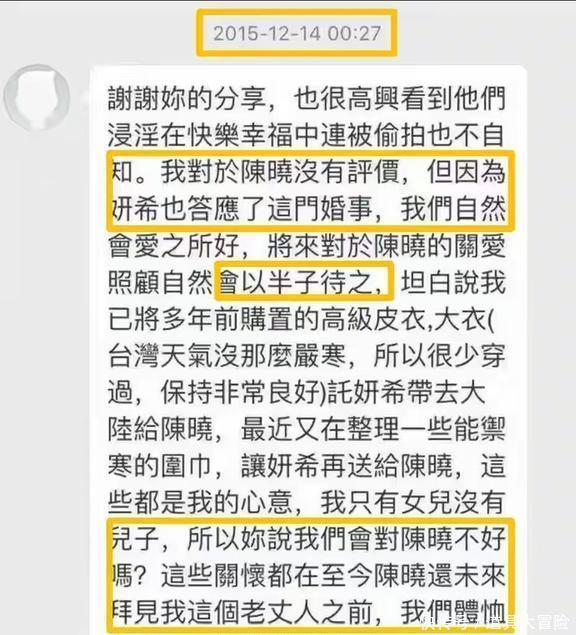 甚至把自己珍藏了多年的高级皮衣、大衣和围巾,全都送给了陈晓,还是让陈妍希去递的呢。我只有一个女儿,没儿子,怎么可能会对陈晓不好呢?在干这些事之前,陈晓还没去见过他老丈人呢。